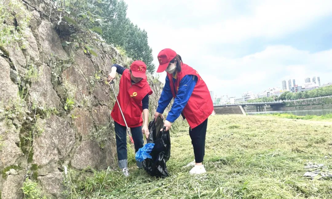 活動(dòng)中,大家積極發(fā)揮模范帶頭作用,沿著豐樂(lè)河畔,邊走邊清理沿河生活垃圾、有色垃圾、枯枝爛葉等雜物,并將收集整理后的垃圾進(jìn)行集中處理。一抹抹“志愿紅”在河畔形成亮麗的風(fēng)景線,充分彰顯了安順青年新?lián)?dāng)、新作為。
