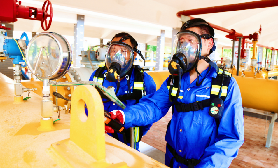 穿戴空呼機,關(guān)閉閥門、實施放散及氮氣置換,完成泄漏點搶修。